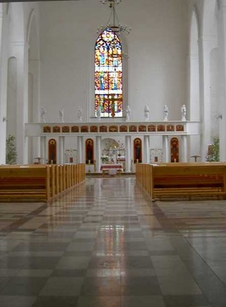 Seurakunnan kirkko on rakennettu vuosina 1370 – 1380. Kirkko tuhoutui ensimmäisen kerran vuonna 1455. Seuraavana vuonna kirkko rakennettiin uudelleen, mutta se paloi jälleen vuonna 1500. Kirkko korjattiin ja se toimi kaupungin saksalaisen luterilaisen väestön kirkkona aina vuoteen 1945 asti. Kirkko tuhoutui toisessa maailmansodassa, kuten lähes koko kaupunki. Sen jälkeen, kun Danzig oli liitetty Puolaan ja kaupungin saksalainen väestö oli karkotettu, ottivat jesuiitat kirkon rauniot haltuunsa ja aloittivat kirkon jälleenrakentamisen.